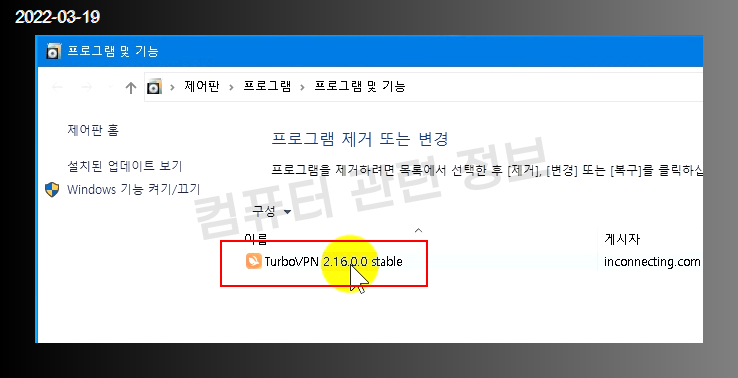 제어판 - 프로그램 제거 또는 변경으로 이동하세요.