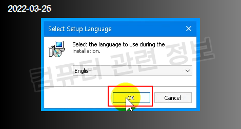 다운로드 받은 파일을 실행하세요. 설치 마법사가 실행되는데 OK 를 클릭하세요.