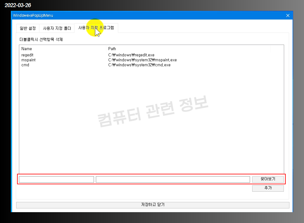 사용자 지정 프로그램을 폴더별로 분류할 수 있도록 추가하였습니다. 2022. 09. 02