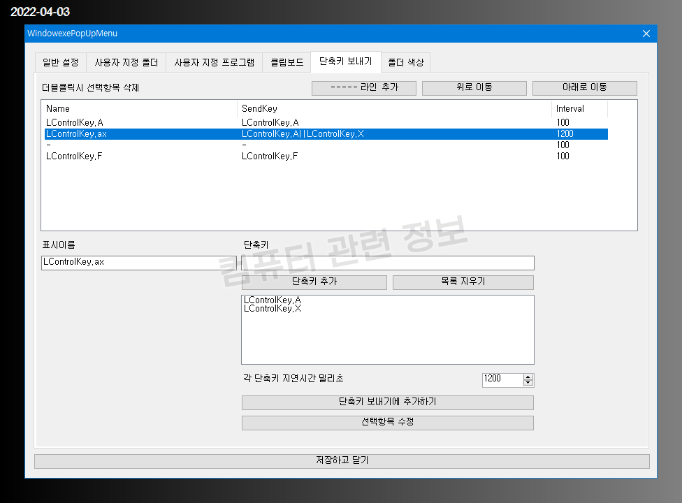 단일키 및 다중키, 지정한 키를 순서대로 단축키를 누르는 것도 가능합니다.