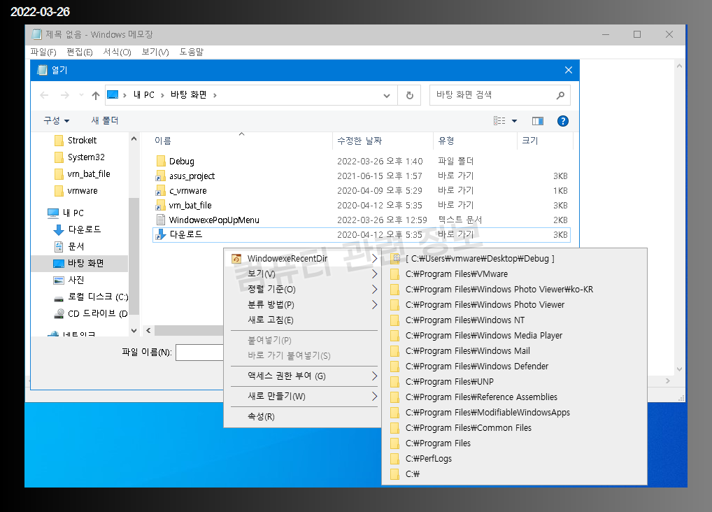 이게 탐색기나 파일 선택 대화상자에서만 사용이 가능하기 때문에 불편하더라구요.