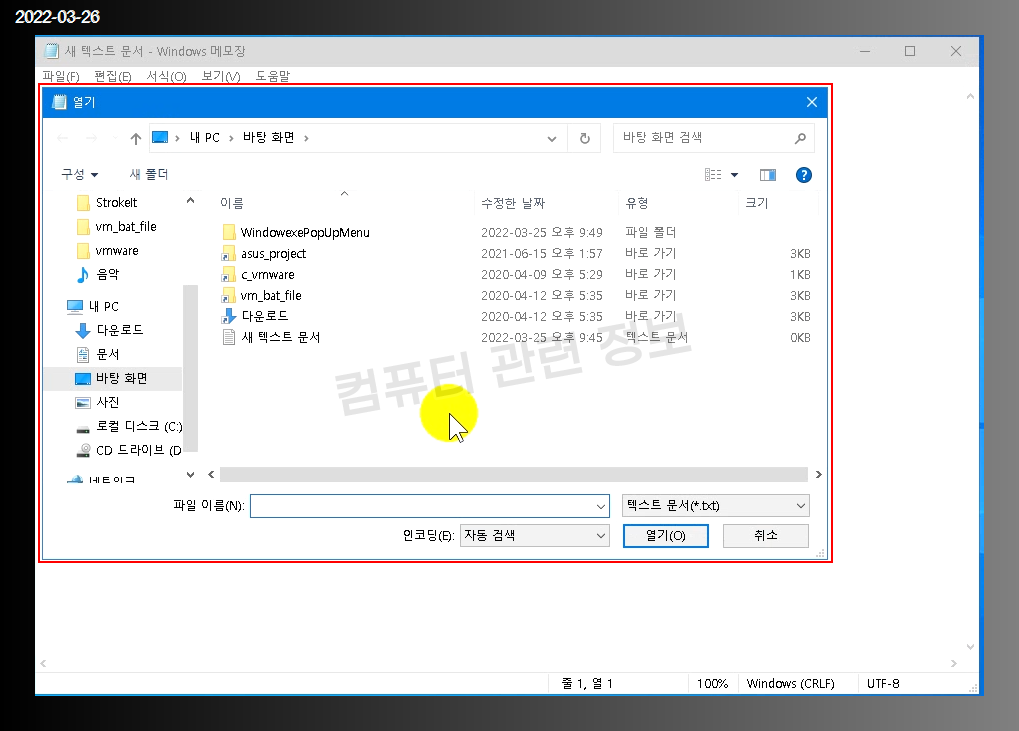 파일 열기 대화상자에서 폴더를 바로 이동하는 움짤입니다.