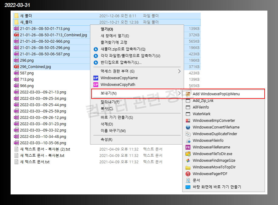 파일명은 변경하지 마세요. WindowexePopUpMenu 가 아니면 실행이 되지 않습니다.