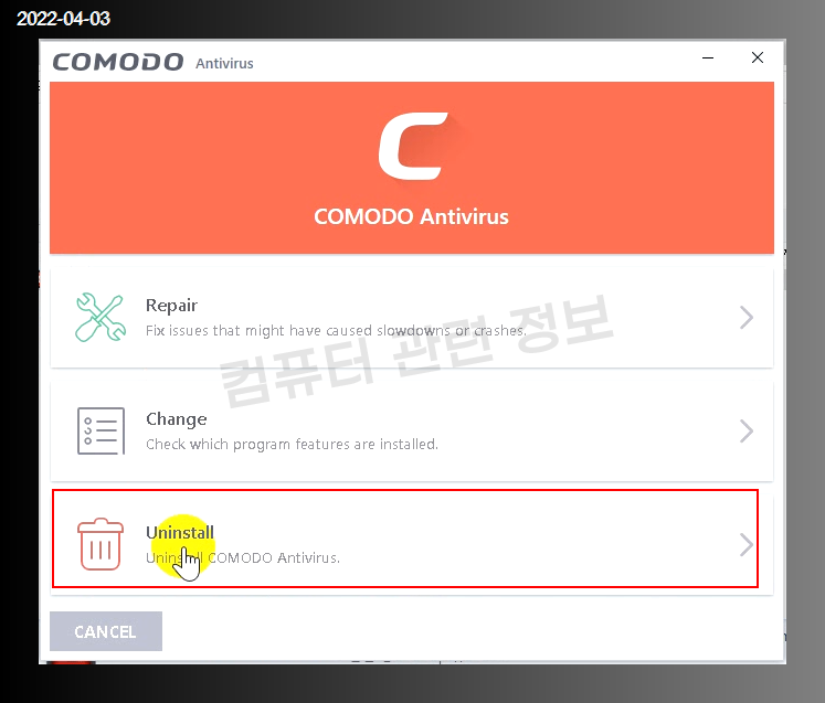 COMODO Antivirus 를 삭제해보겠습니다. COMODO Antivirus 더블클릭.