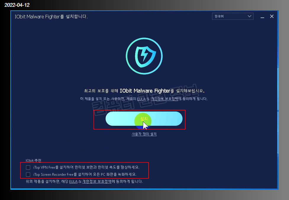 다음화면에서 iTop Data Recovery 도 설치할건지 또 물어보네요. 짜증나게시리.