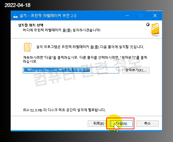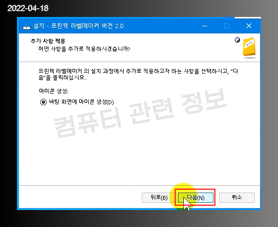 프린텍 라벨메이커 버전 2.0 를 더블클릭하세요.
