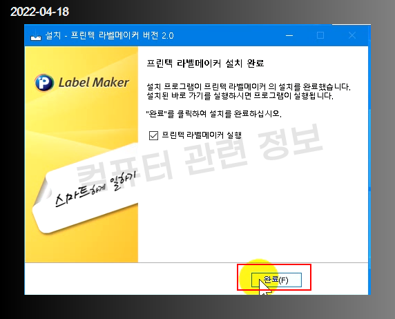 프로그램 설치가 완료되었습니다. 완료를 클릭하세요.