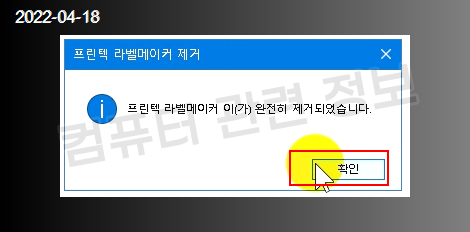 프로그램 제거 되었다는 메세지가 나옵니다. 확인을 클릭하세요.