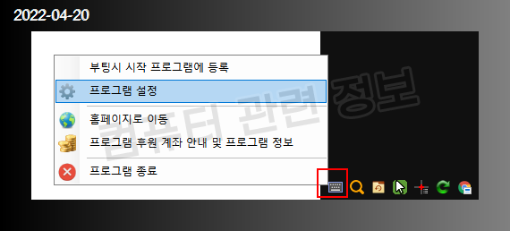 작업표시줄 오른쪽 시스템 트레이에 키보드 모양의 아이콘이 생깁니다.