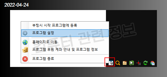 프로그램을 일시 중지 시키려면 시스템 트레이에 있는 아이콘을 클릭하세요. 다시 클릭하면 활성화됩니다.