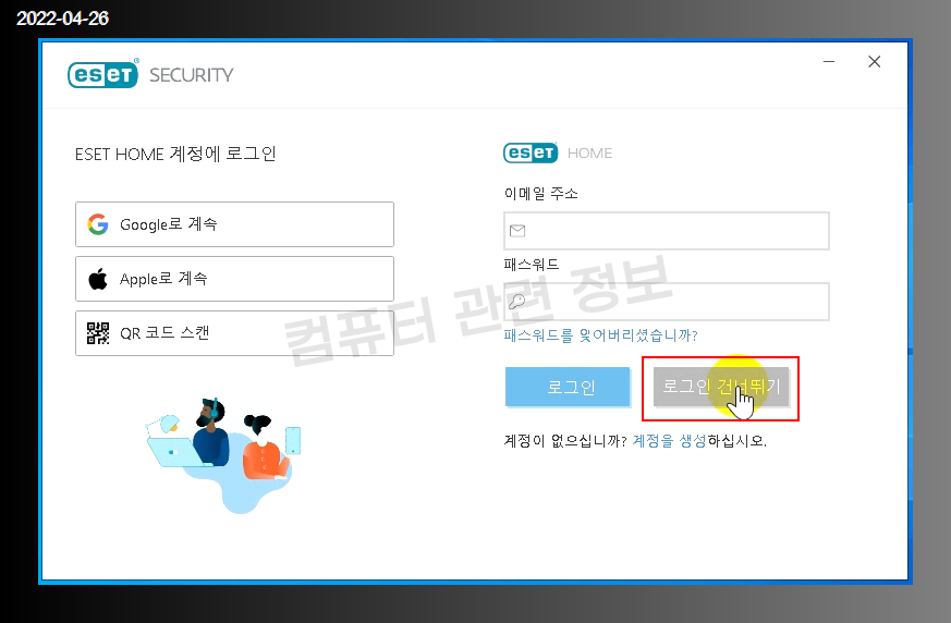 건너뛰기를 눌러도 마지막에 메일 등록은 해야됩니다. (아무거나 입력해도 사용가능)