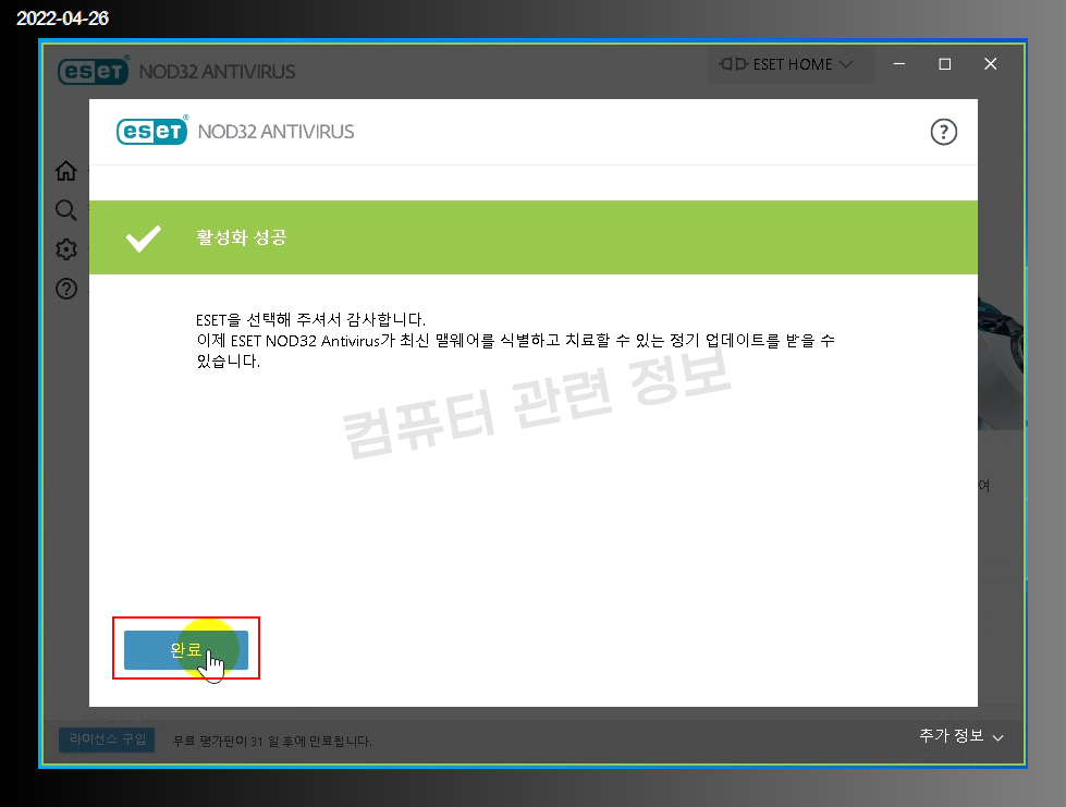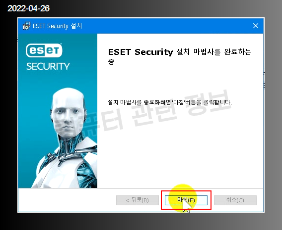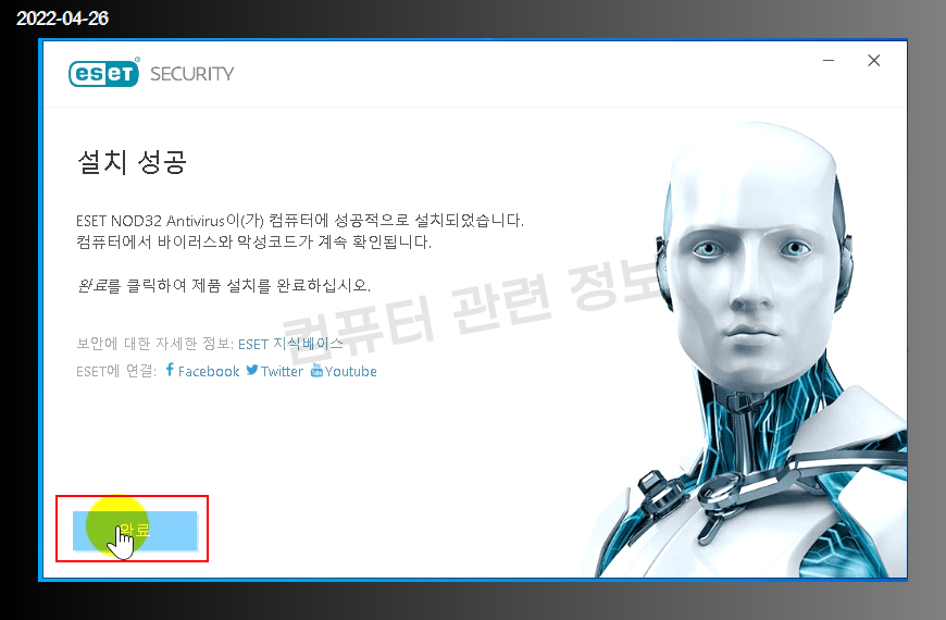 프로그램 설치가 완료되었습니다. 완료를 클릭하세요.