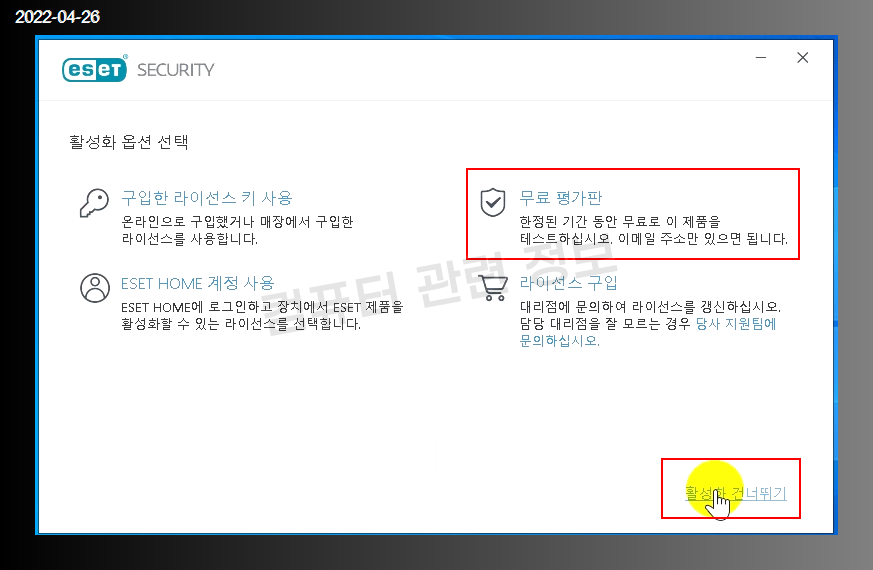 무료 평가판 클릭 또는 활성화 건너뛰기를 클릭하세요.