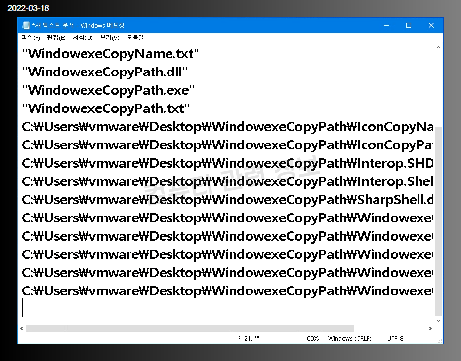 WindowexeCopyName 메뉴를 클릭한 화면입니다.