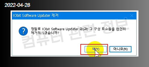 프로그램을 제거할건지 물어보는데 예 클릭.