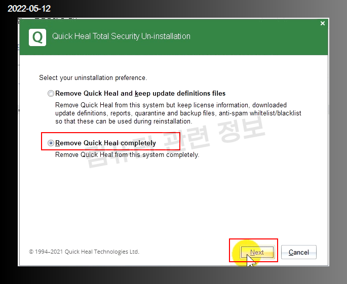 Remove Quick Heal completely 체크후 Next 클릭