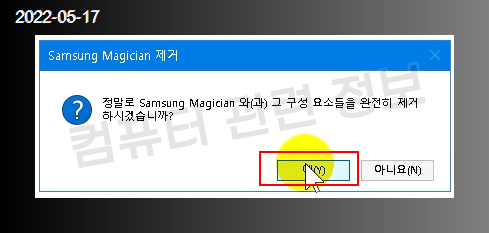 프로그램을 제거할건지 물어보는데 예 클릭.