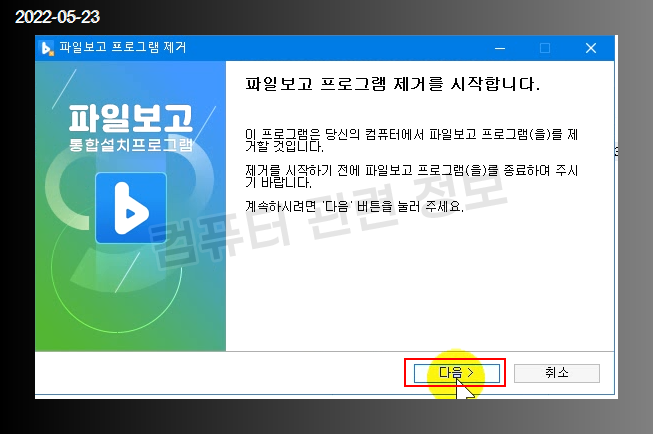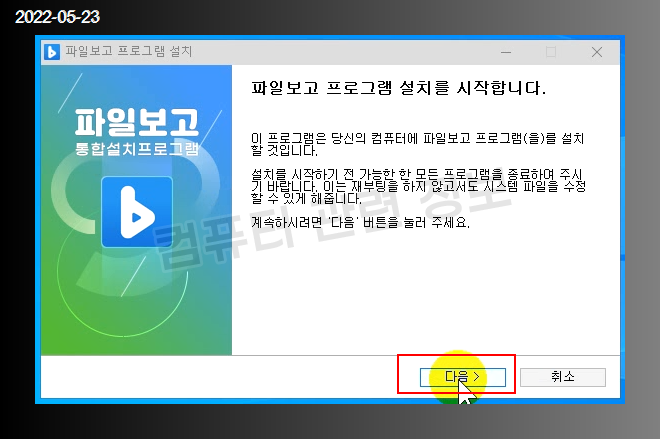 설치파일을 실행하면 프로그램 설치 마법사가 실행됩니다. 다음 클릭.