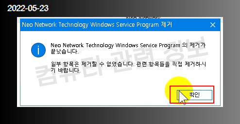 제가 테스트한 컴퓨터에서는 이런 확인 메세지가 나오더라도 별다른 찌꺼기는 확인되지 않았습니다.