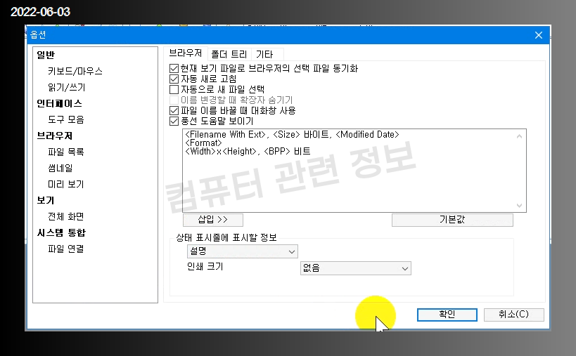 프로그램을 처음 실행하면 나오는 설정화면입니다. 확인 클릭.
