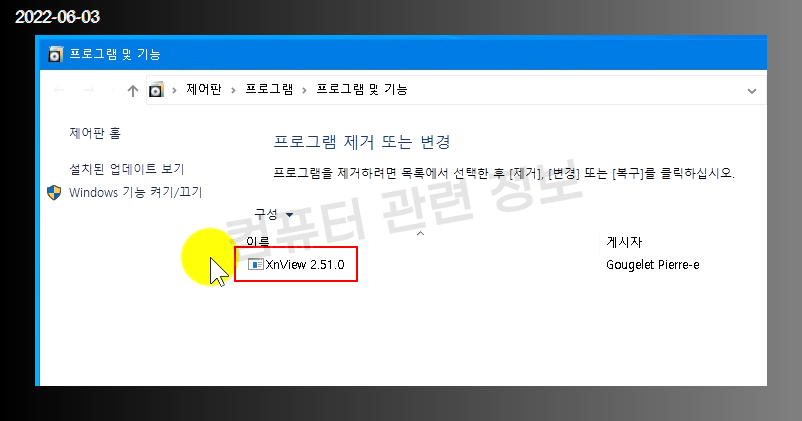 제어판 - 프로그램 추가/제거로 이동. (시작 메뉴 - 검색에서 앱 및 기능에서도 삭제가능)