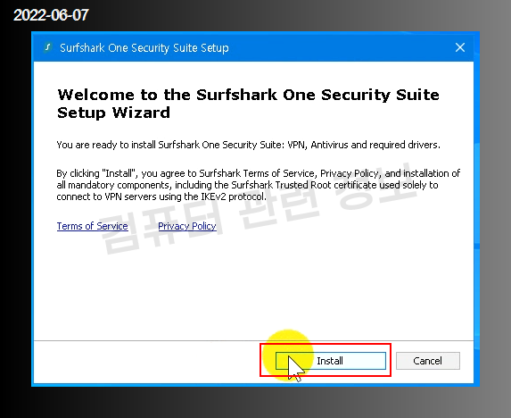 다운로드 받은 파일을 실행하세요. Install 클릭.