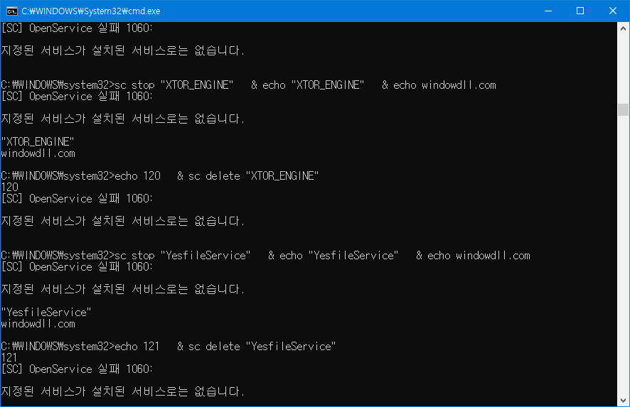 sc stop "XTOR_ENGINE" & echo 121 & sc delete "XTOR_ENGINE"