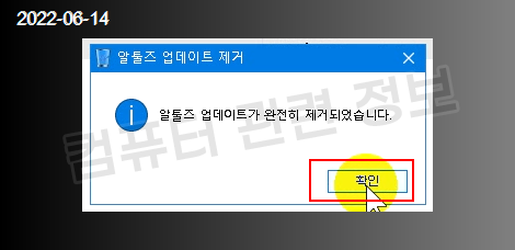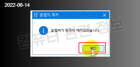 프로그램 삭제가 완료되었습니다. 확인 클릭.