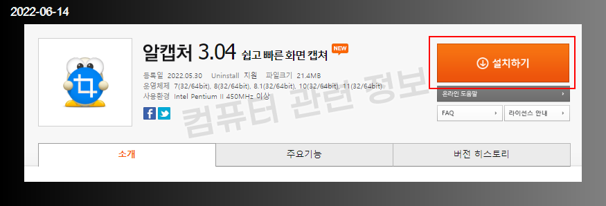 이스트소프트에서 제공하는 캡쳐 프로그램, 알캡쳐 프로그램 다운로드 및 설치, 삭제하는 방법, 프로그램 설치후 생성되는 파일 및 레지스트리 정보에 대해서 자세히 알아보겠습니다.