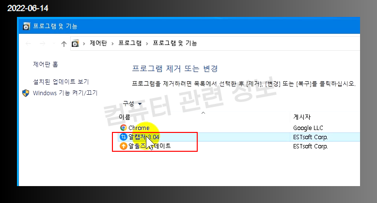 알캡쳐 및 알툴즈 업데이트 두개의 프로그램이 추가되어 있습니다.