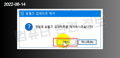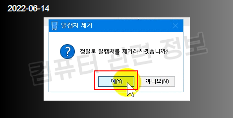 프로그램을 삭제할건지 물어보는데 예 클릭.