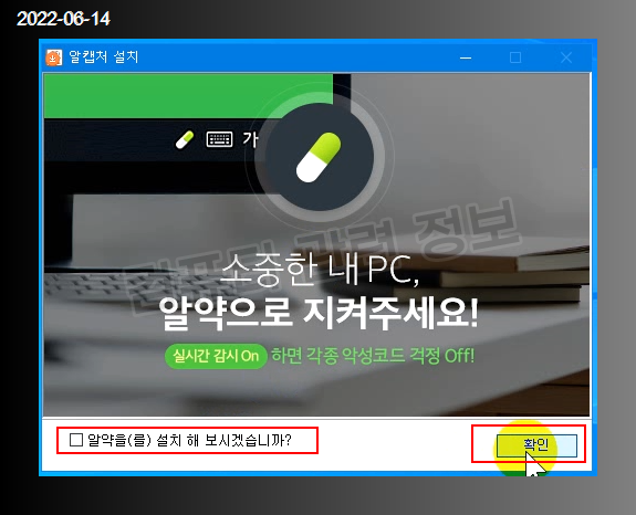 짜증나게 알약을 설치할건지 또 물어보네요. 기본값이 체크상태입니다.