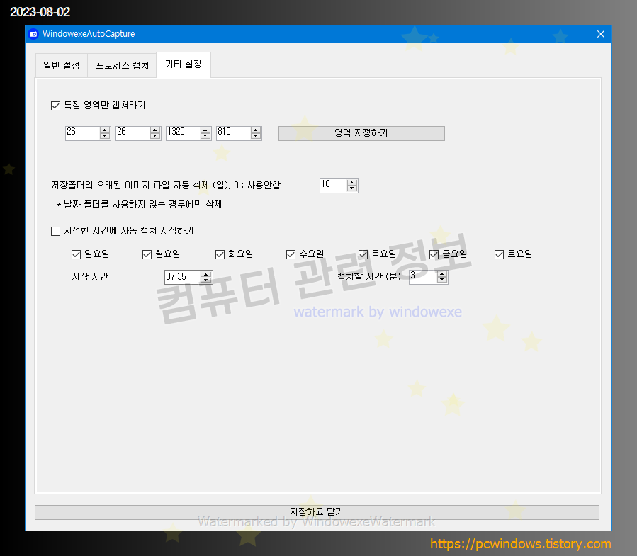 자동 캡쳐시 특정 프로그램만 캡쳐하는 것도 가능합니다.