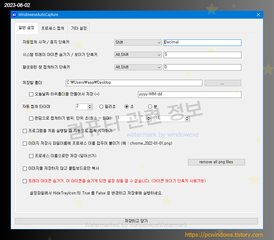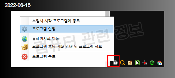 자동 캡쳐를 중지시키려면 지정한 단축키를 다시 눌러도 되고, 시스템 트레이에 있는 아이콘을 클릭해도 됩니다.