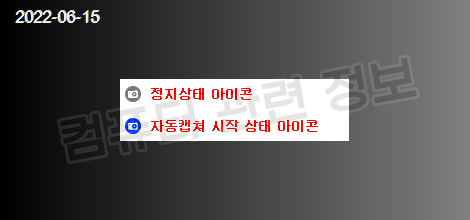 자동 캡쳐 상태의 아이콘과 정지상태의 아이콘이 다르게 표시됩니다.