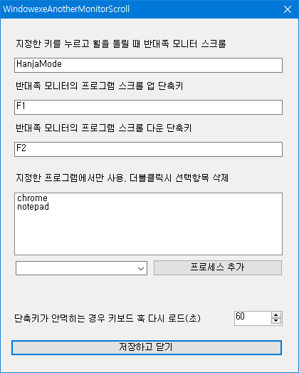 파일명은 변경하지 마세요. WindowexeAnotherMonitorScroll 이 아니면 실행이 되지 않습니다.