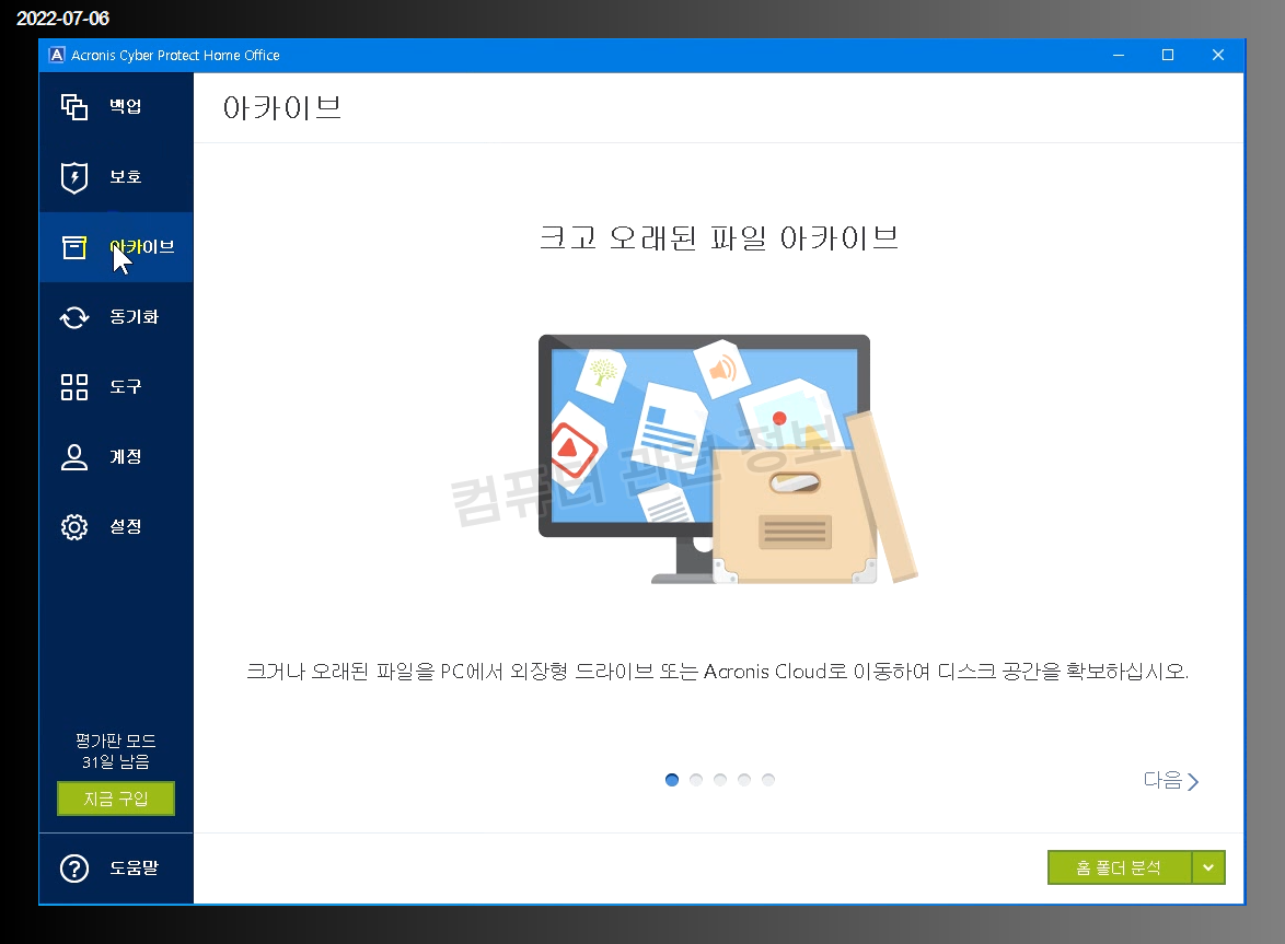 공식 홈페이지 다운로드 링크 : https://www.acronis.com/ko-kr/homecomputing/thanks/home-office/