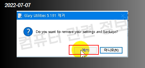 Glary Utilities PRO 설정 및 백업파일도 제거할건지 물어보는데 필요없으므로 예 클릭.