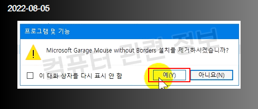 프로그램을 삭제할건지 물어보는데 예를 클릭하세요.