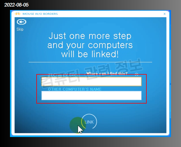 보안 코드 및 컴퓨터 이름이 보입니다. 이걸 서브 컴퓨터에 입력하면 됩니다.
