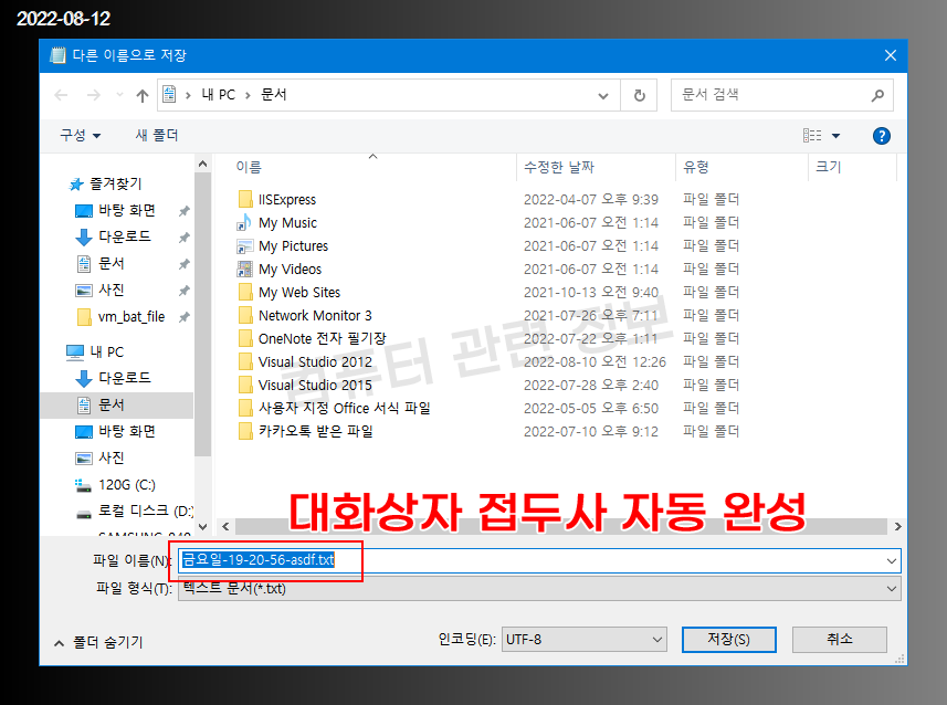 접미사로 사용하는 경우 파일 이름 ( 테스트_2022-08-12.txt )