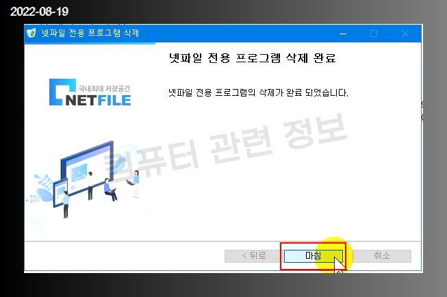 프로그램 삭제가 완료되었습니다. 마침을 클릭하세요.