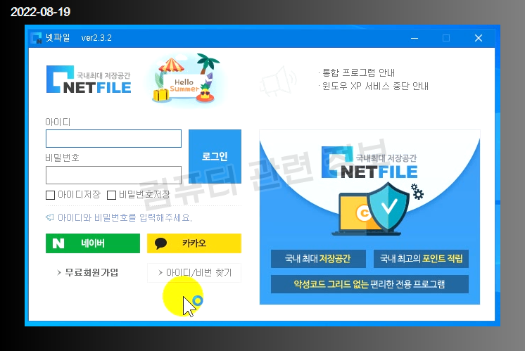 넷파일 홈페이지에 가면 악성코드 그리드 없는 프로그램이라고 소개를 하고 있는데요.