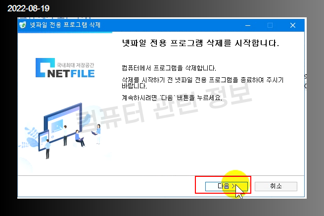 프로그램 제거가 시작됩니다. 다음 클릭.