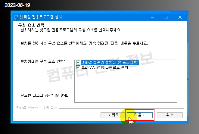 다음 클릭.