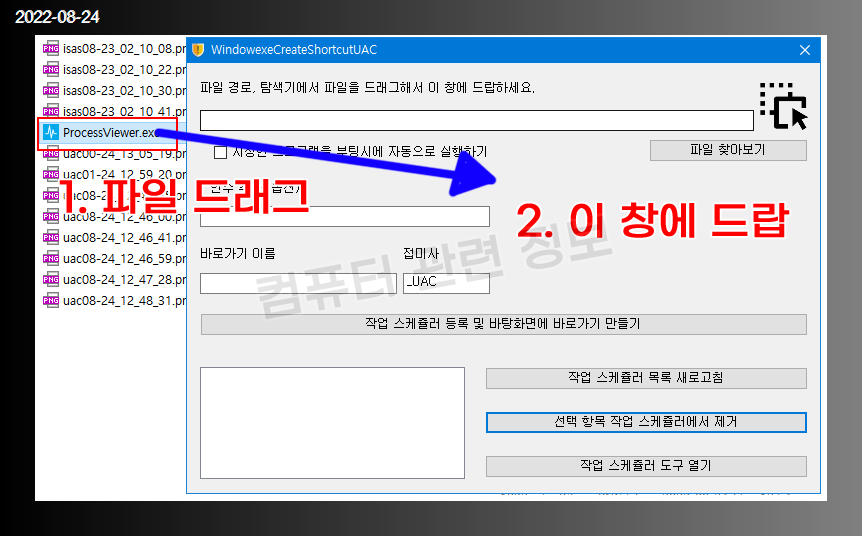 1. 작업 스케쥴러에 지정한 프로그램을 등록 (최고 관리자 권한으로 실행)