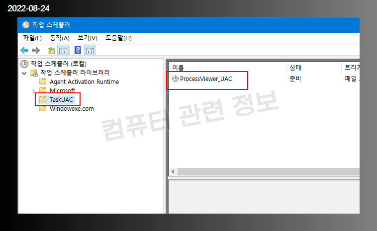 관리하기 쉽도록 TaskUAC 폴더에 별도로 보관합니다.