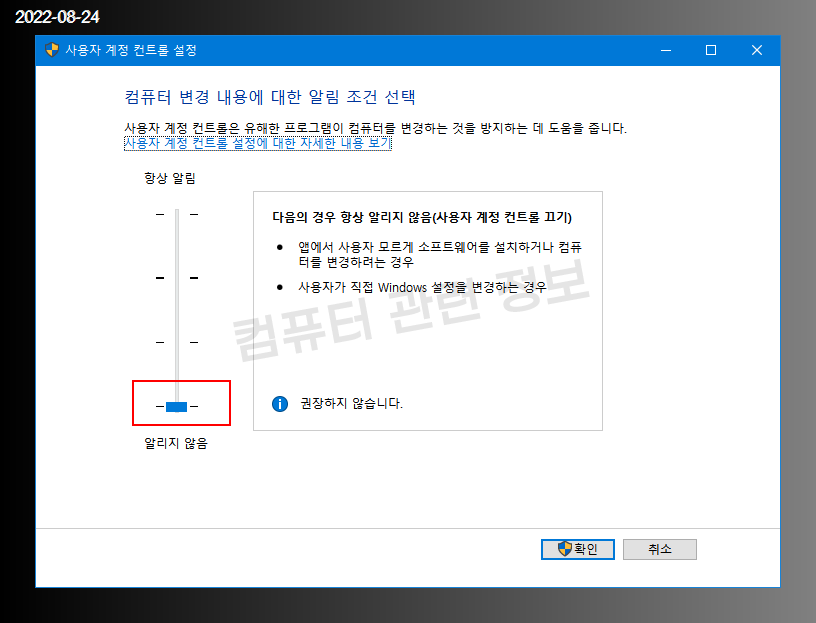 특정 프로그램을 실행할 때 사용자 계정 컨트롤 메세지를 숨기는 기본적인 방법