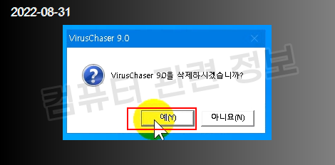 프로그램을 삭제할건지 물어보는데 예 클릭.