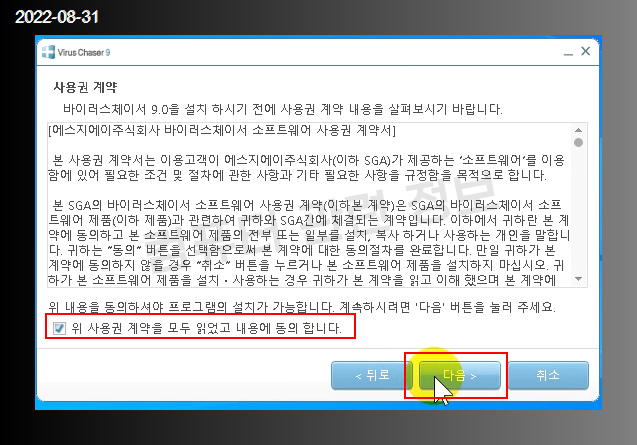 다운로드 받은 파일을 실행하고 설치하기를 클릭하세요.